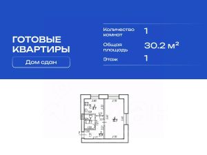 Продается квартира в сданном жилом комплексе на 1 этаже в девятиэтажном кирпичном доме. Общая площадь 30.20 кв. м.
