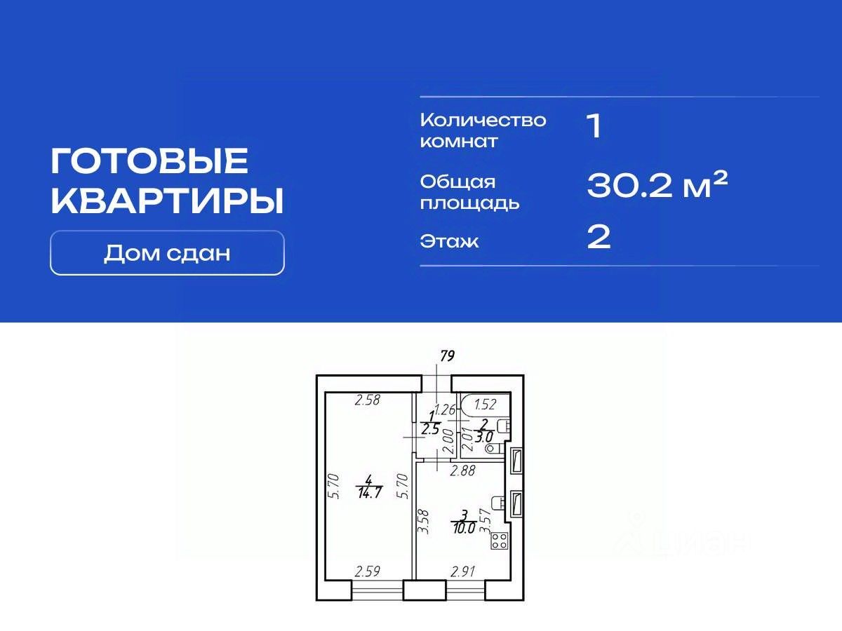Продается квартира в сданном жилом комплексе на 2 этаже в девятиэтажном кирпичном доме. Общая площадь 30.20 кв. м.