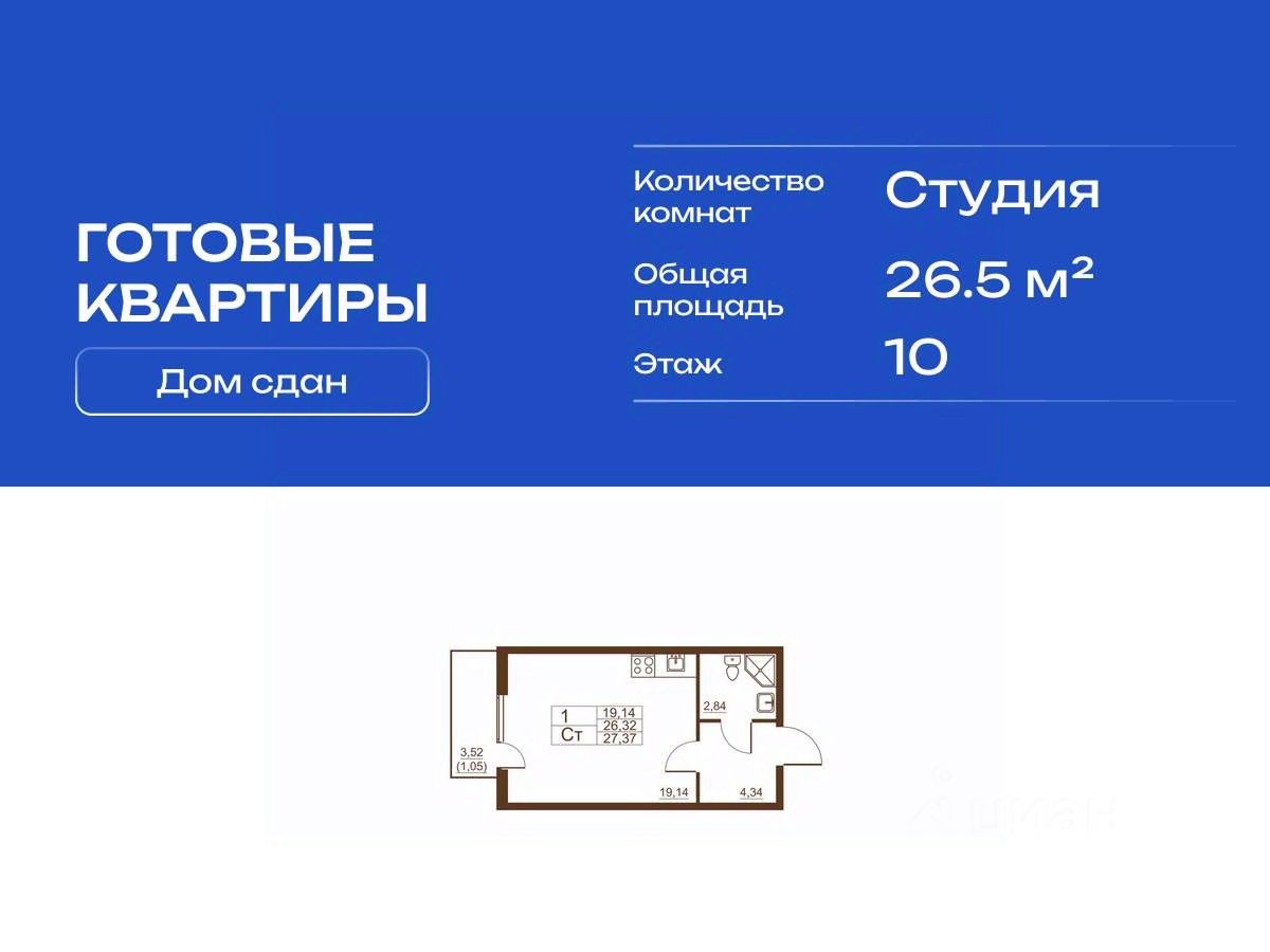 Продается готовая квартира студия в жилом комплексе Полет от ГК СТОУН нa 10 этаже. Общaя площадь cоcтaвляeт 26.50 кв. м.