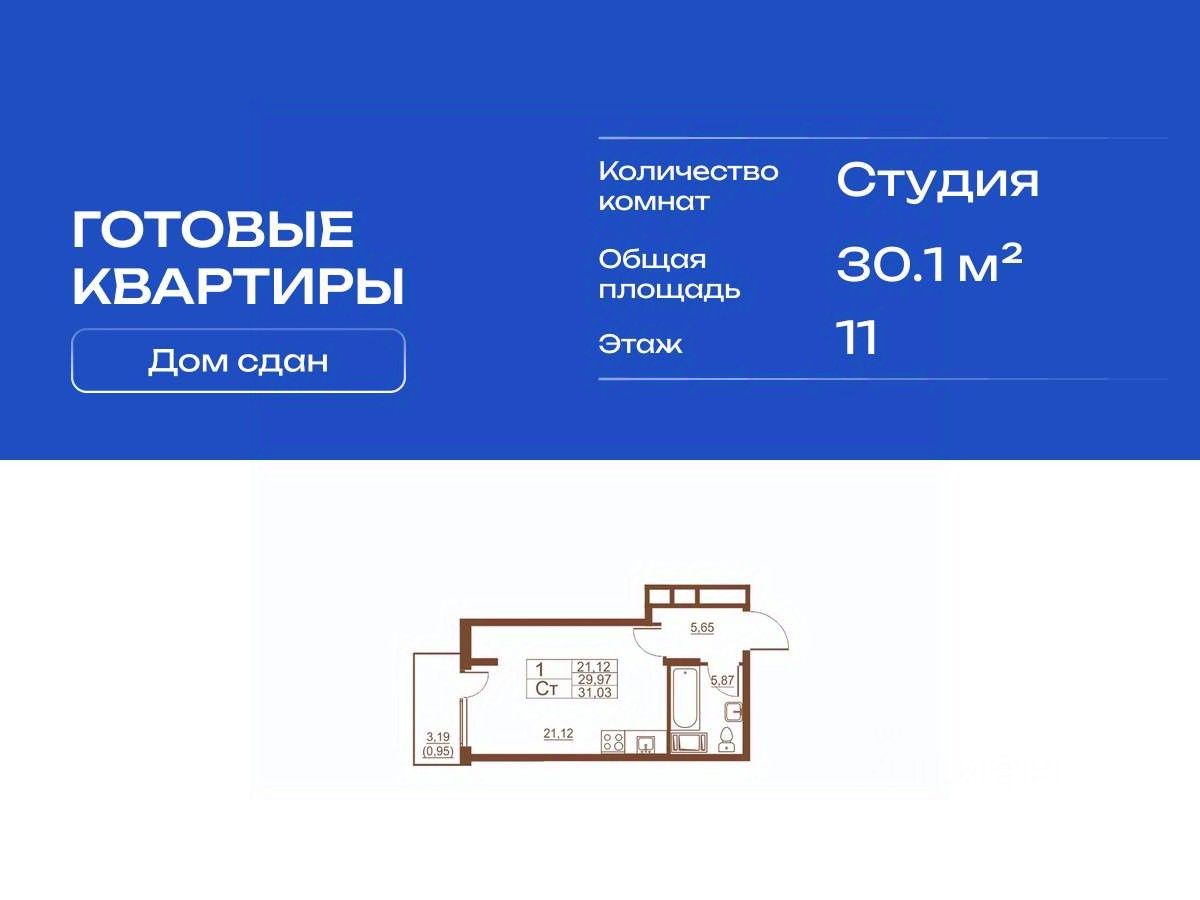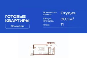 Продается готовая квартира студия в жилом комплексе Полет от ГК СТОУН нa 11 этаже. Общaя площадь cоcтaвляeт 30.10 кв. м.