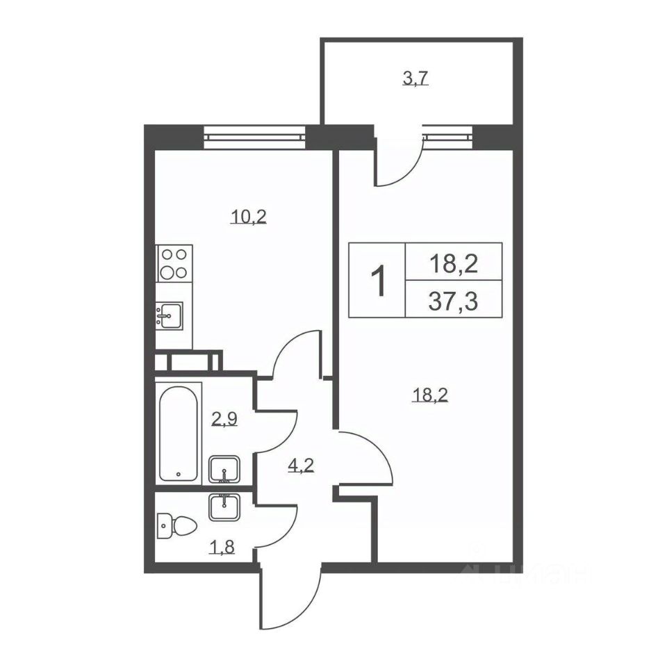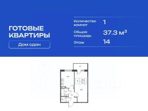Продается квартира в сданном жилом комплексе на 14 этаже. Общая площадь 37.30 кв. м.