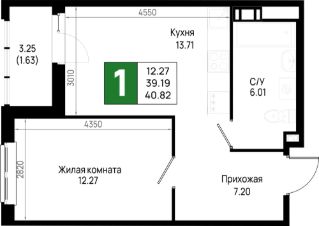 Общая площадь40,82 м²