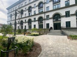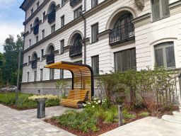 "Аура" — это малоэтажный дом середины XX в. с неоклассической архитектурой — рустованным фасадом, арочными окнами и французскими балконами. Застройщик Hansa Group сохранил аутентичный внешний вид и наполнил здание современными инженерными и планировочными решениями.
