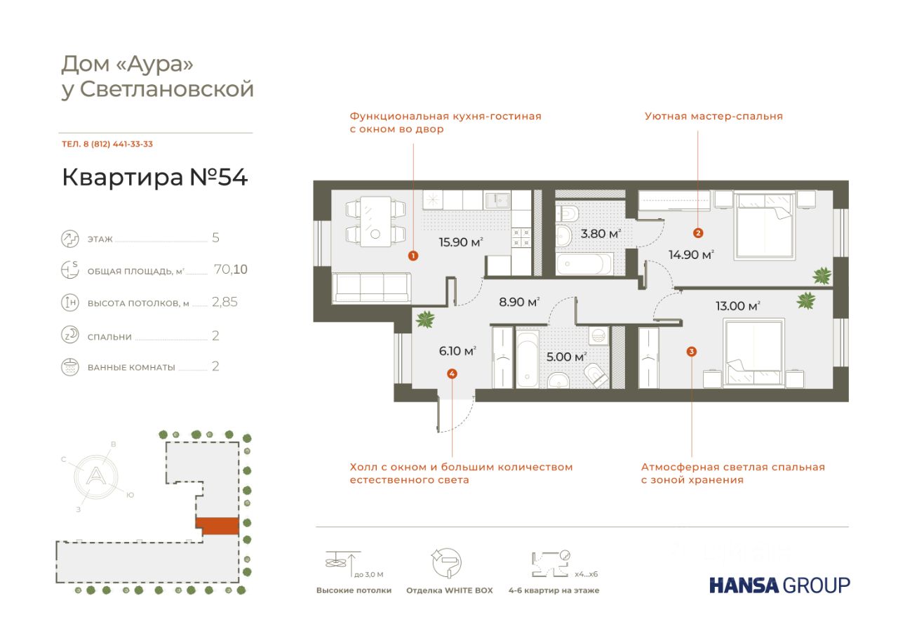 и французскими балконами. Застройщик Hansa Group сохранил аутентичный внешний вид и наполнил здание современными инженерными и планировочными решениями.