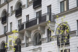 "Аура" — это малоэтажный дом середины XX в. с неоклассической архитектурой — рустованным фасадом, арочными окнами