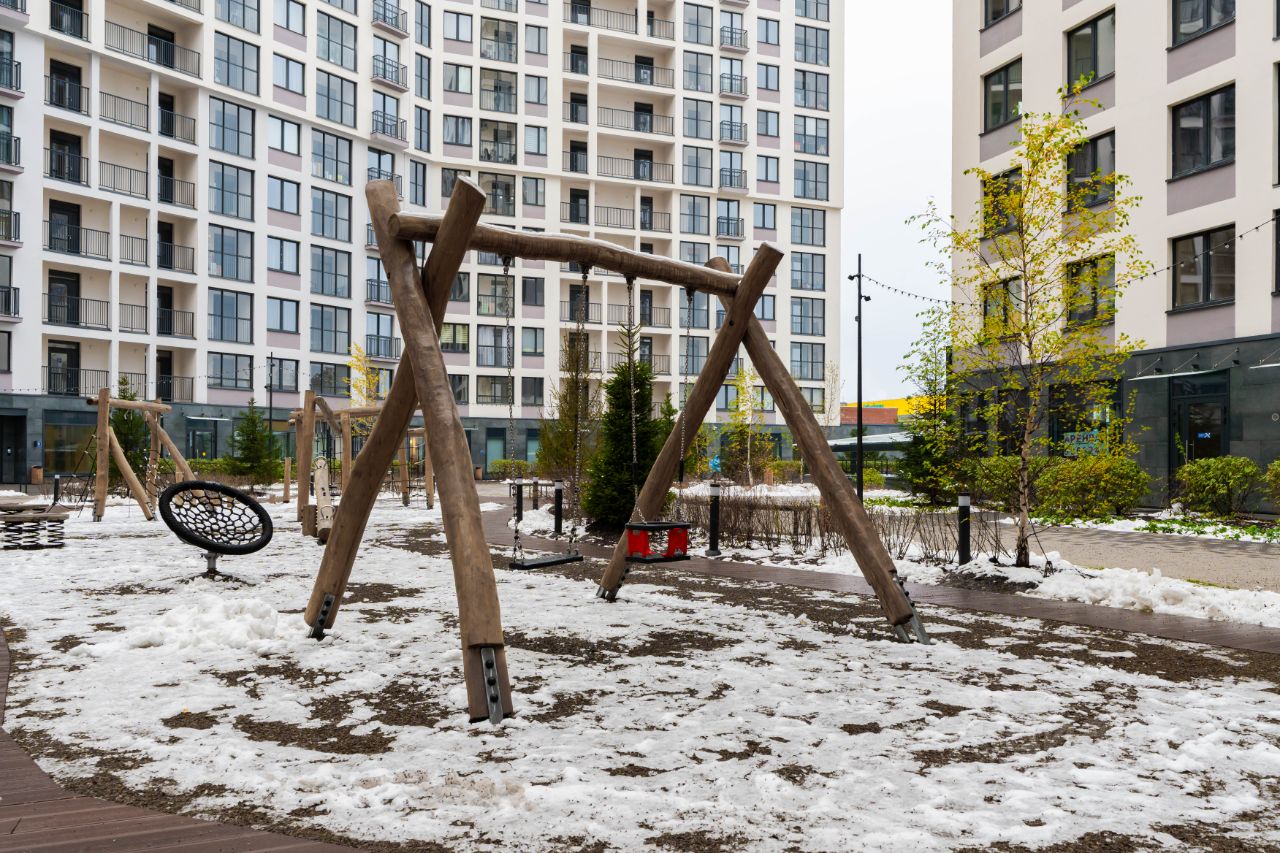 - На территории променад для прогулок, внутренний двор с лаунж-зонами, игровые и спортивные площадки