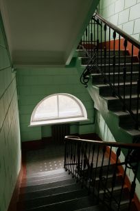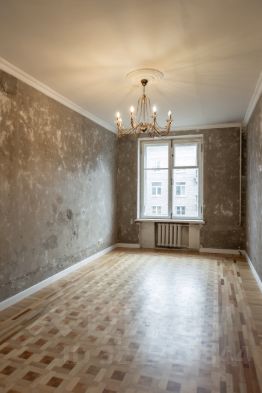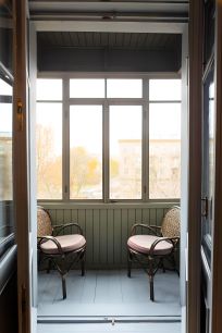 Деревянные окна, балкон и двери в отличном состоянии. Полы новые, собраны из разных пород, благодаря чему получилось интересное сочетание рисунка и цвета.
