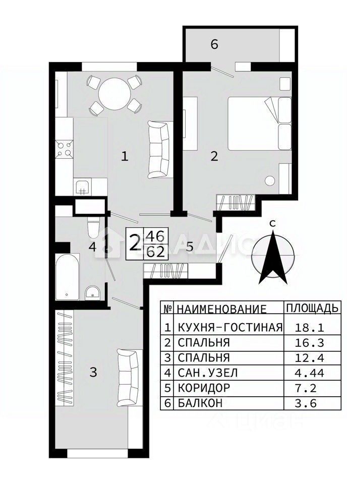 Квартира расположена на 9 этаже 18-этажного кирпично-монолитного дома, построенного в 2016 году. Общая площадь составляет 58,44 кв. м, из которых 28,7 кв. м — жилая площадь, 18,1 кв. м — кухня. В квартире выполнен евроремонт, что позволяет новым владельцам сразу заселиться без дополнительных вложений.