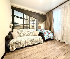 В комнате уложен практичный ламинат, в кухне и коридоре — кафельная плитка, установлена надежная входная дверь и современный натяжной потолок.