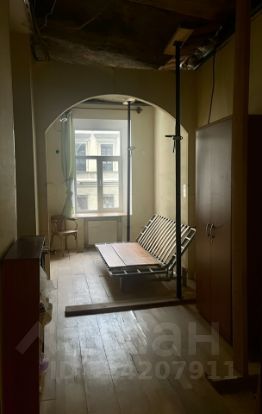 Потолок в комнате зашит фанерой и подперт железными балками.
