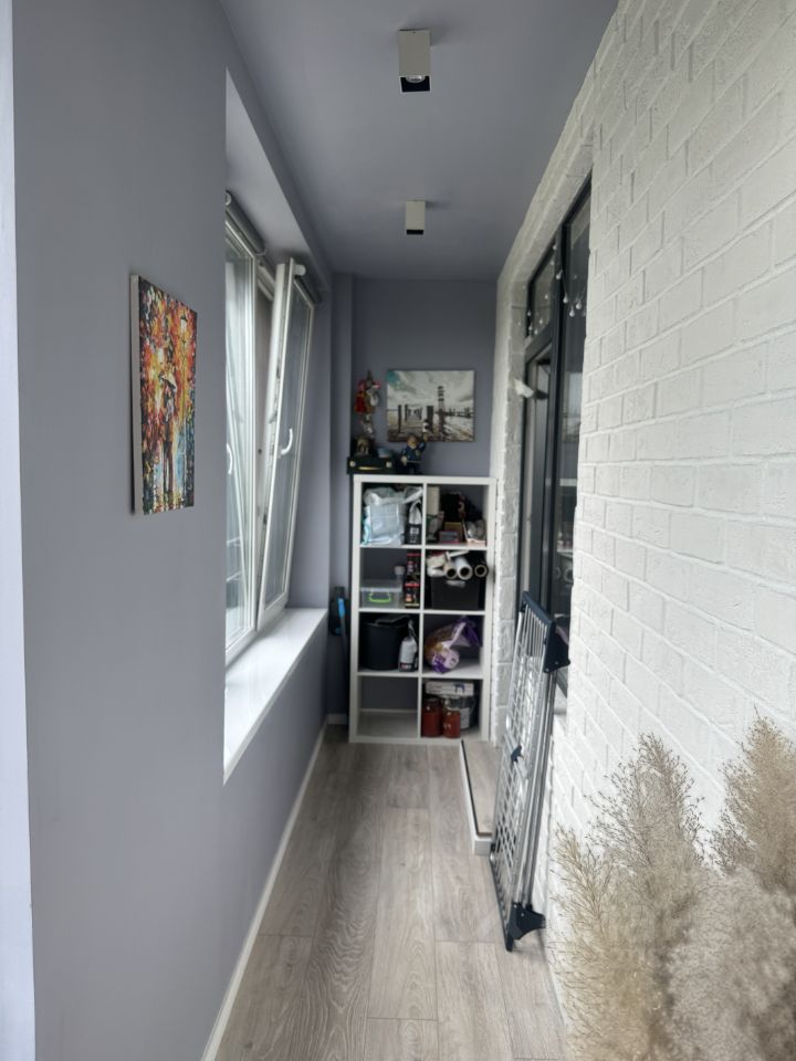 2. Большая 3х метровая лоджия сделана под рабочий кабинет - проведены все коммуникации, свет, розетки, проводной интернет. В одной части лоджии кабинет, во второй - дополнительная зона хранения.