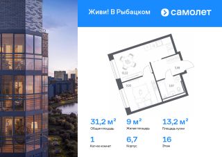 Строим кварталы для жизни с заботой о будущем. Предлагается 1-комнатная квартира комфорт-класса 31,17 кв.м в корпусе 6,7 на 16 этаже, в ЖК "Живи! В Рыбацком"
