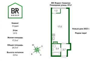 Продается Новая Студия 24 м2 с предчистовой отделкой расположенная на 3 этаже 13-этажного кирпично-монолитного дома 2023 года постройки! ЖК "Forest Аквилон" — жилой комплекс, расположенный в одном из самых престижных районов Санкт-Петербурга в Приморском, застройщик "Группа Аквилон", 28 лет на рынке недвижимости. Дом расположен рядом с лесопарковой зоной, с благоустроенными зонами отдыха! Рядом расположены невысокие дома комфорт и бизнес класса и одно из самых современных учебных заведений Санкт-Петербурга - новый IT - лицей.