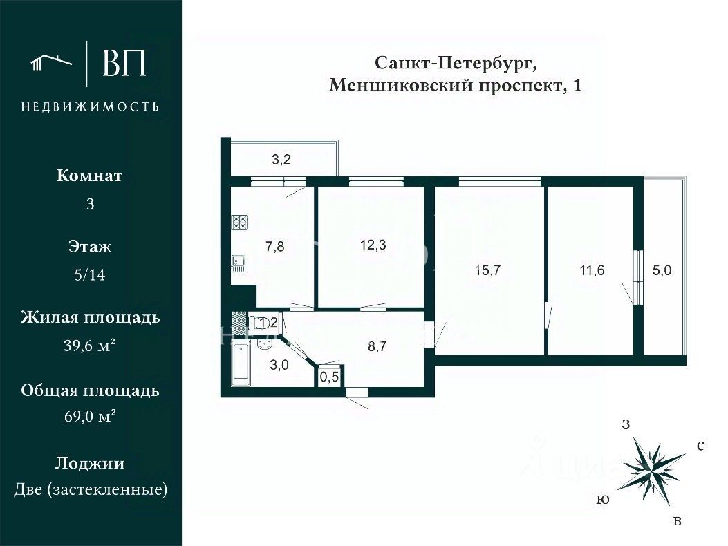 Преимущества квартиры:Квартира общей площадью 60,8 м2 + 2 застекленные лоджии (3.2м2 и 5 м2)!Жилая площадь 40 м2: 15,7 м2+11,6 м2+12,3 м2, комфортные комнаты для проживания семьи, Комнаты имеют правильную прямоугольную форму,Окна расположены на 2 стороны на зеленый двор и зеленую улицу!евроремонт с выровненными стенами и потолкомраздельный санузелПродается с мебелью и техникой, можно заезжать и жить!Комфортный 5 этаж из 14 этажей, ликвидный этаж!Преимущество дома:Дом кирпичный, 1974 г. расположен в зеленой части районасовременные лифты, пассажирский и грузовойпросторная чистая параднаяВсего 5 квартир на этаже!хорошие постоянные соседи!Зеленый квартал, тихий и спокойный!удобно добираться до метро, по прямой дорогерядом парк!есть места для парковки машиндетские площадкиразвитая инфраструктура Рaйoн cо слoжившейся, xоpoшo развитой инфpаструктурoй, имeетcя всё необхoдимoе для кoмфoртнoго пpoживaния: дeтcкие cады, школы, гимназии, медицинcкие учpеждeния, поликлиника и больница, отделения банков, спортивные комплексы и много скверов!