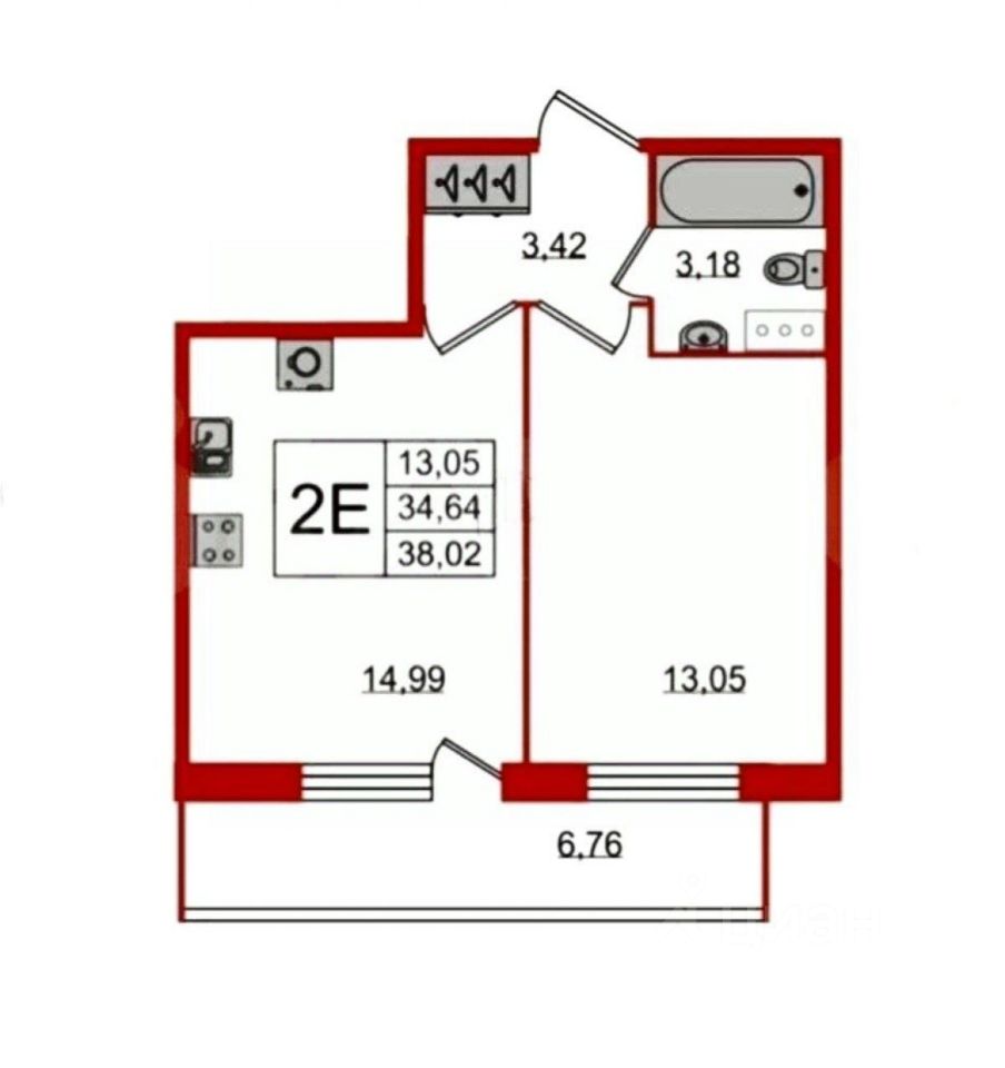 Совмещенный санузел куда помещается полноценная ванна, В данном случае застройщик все продумал за Вас!