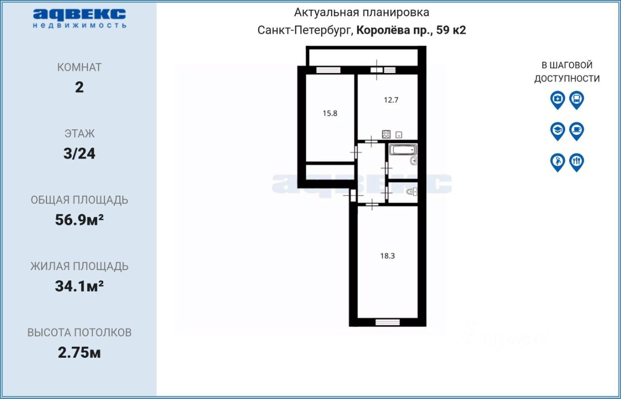 Одна из самых удачных планировок в ЖК: квартира двухсторонняя с окнами в закрытый двор без машин и внутренний проезд (не на шумный проспект); большие по площади кухня, комнаты и санузел. Разумно решен вопрос с местами хранения. Оборудована гардеробная в спальне. В прихожей - эргономичный встроенный шкаф. Свежий современный ремонт в ванной и туалете. Широкая лоджия площадью более 7 кв. метров которую можно использовать как дополнительное место хранения вещей, детских колясок, самокатов и велосипедов и/или как рабочий кабинет.