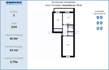 Продается большая, уютная двухкомнатная квартира в Приморском районе в ЖК "Граффити".
