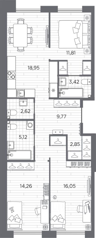 Продаётся 3-комнатная квартира в строящемся доме (1 этап), срок сдачи: III-кв. 2028, общей площадью 84.85 кв.м., на 11 этаже. Новый жилой комплекс "Галерная гавань" от застройщика "Самолет" расположен по адресу: Россия, Санкт-Петербург, территория Галерный Остров