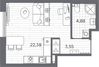 Студия, 30,81 м²
