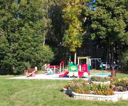 -Благоустроенный двор. Детская площадка. Места для прогулок и отдыха. Рядом с домом протекает река Большая Ижора. В пешей доступности р.Нева.