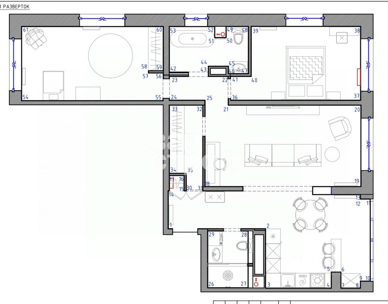 S 87,9. В квартире просторная кухня-столовая, гостинная, две спальни + гардеробная!