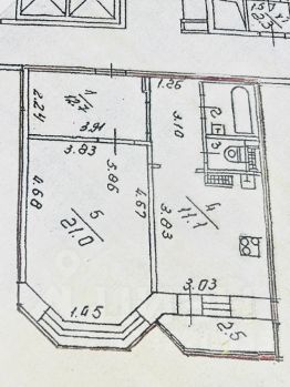 Квартира светлая , общей площадью 50 кв.м . Комната 21 кв.м. с эркером и кухня - столовая 11 кв.м . с балконом , который