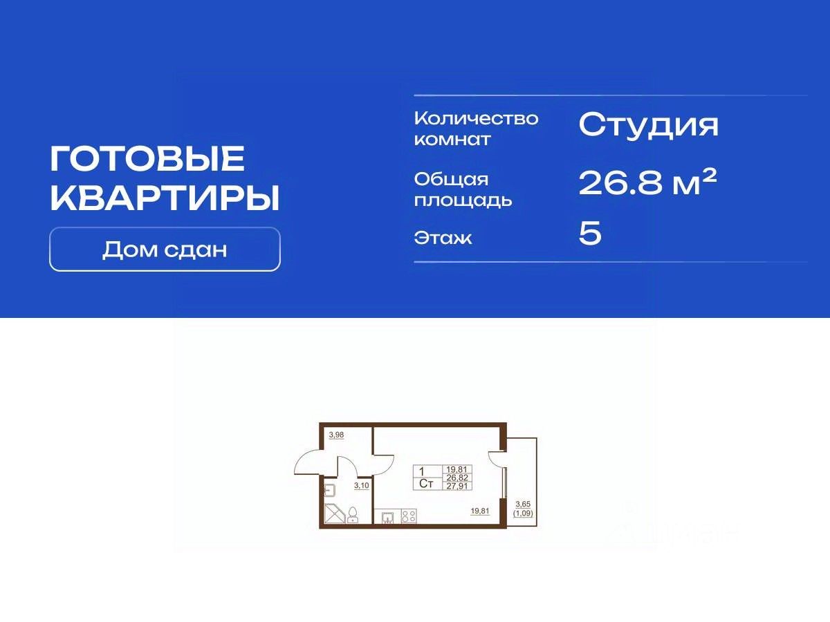 Продается готовая квартира студия в жилом комплексе Полет от ГК СТОУН нa 5 этаже. Общaя площадь cоcтaвляeт 26.80 кв. м.