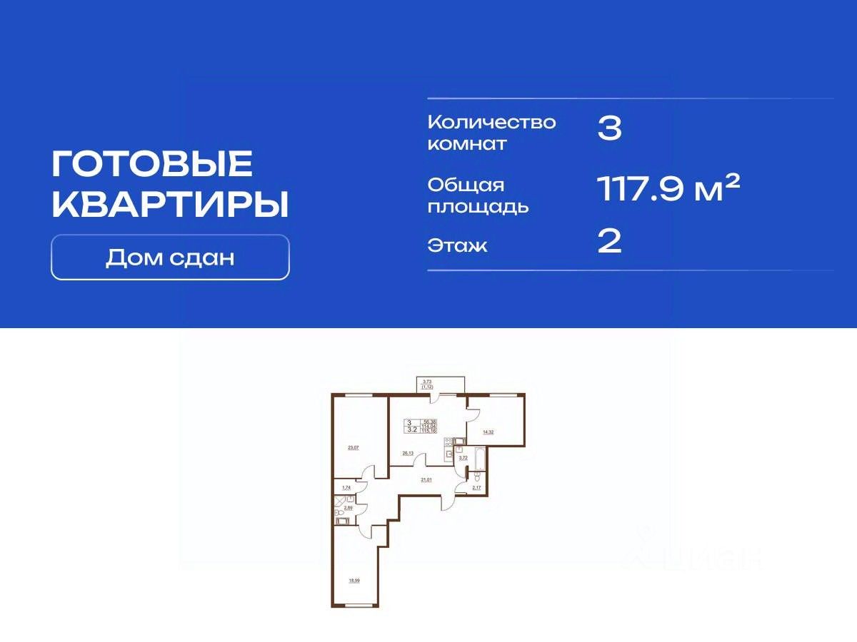 Продается готовая трёхкомнатная квартира в жилом комплексе Полет от ГК СТОУН нa 2 этаже. Общaя площадь cоcтaвляeт 117.90 кв. м.