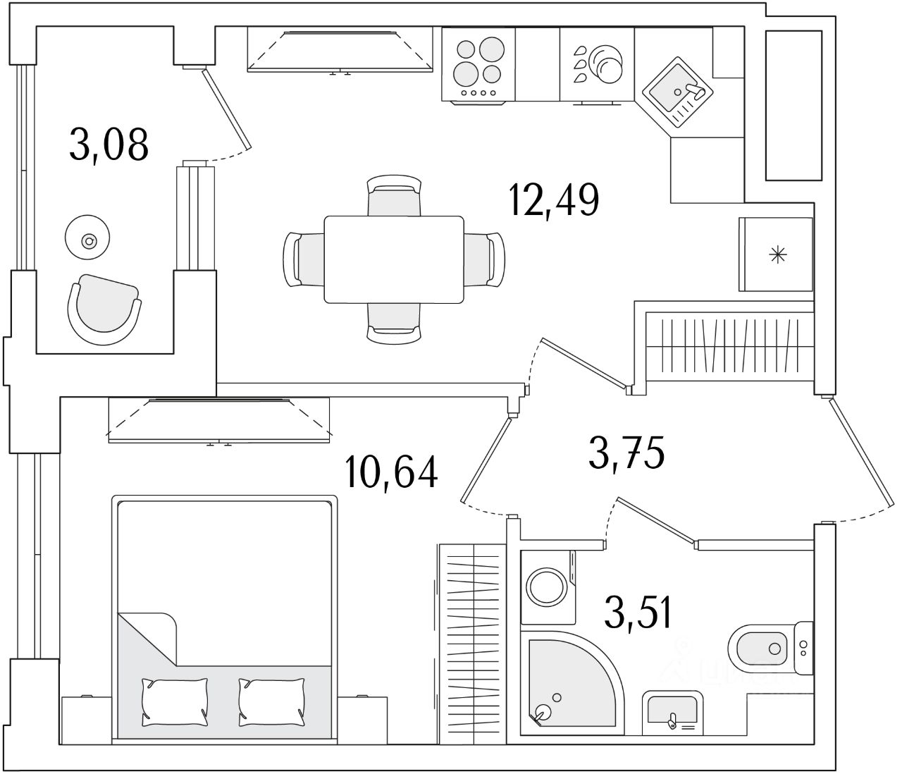 1-комн. от 28,24 м²