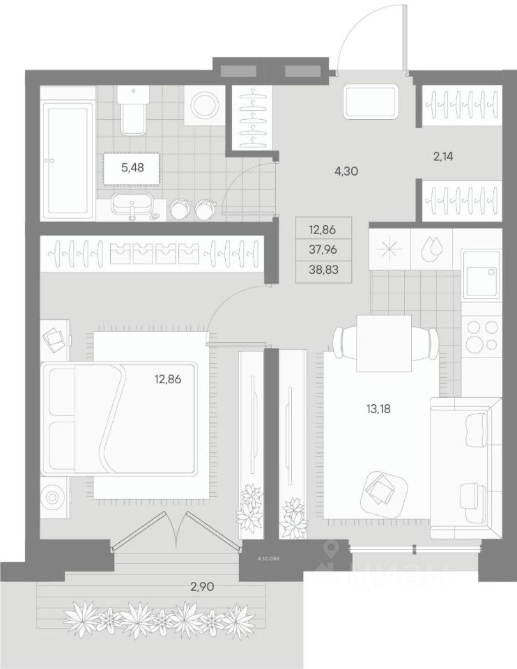 Квартира располагается на 10 этаже 11-этажного дома в ЖК ALPEN.