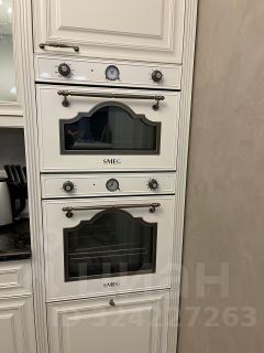 На кухне техника SMEG, белая каменная столешница и полный набор посуды — вы только приносите любимое вино.