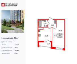 Продается просторная 1-комнатная квартира от застройщика в жилом комплексе "Прайм Приморский" в динамичном Приморском районе.