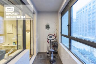 Просторная застекленная лоджия организована как зона для спорта и отдыха.