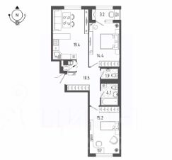 - Кухня-гостиная 19,4 м 2.;