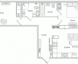Просторная кухня-гостиная площадью 26,41 м² станет сердцем квартиры, где собираются близкие и друзья, две светлые изолированные комнаты 16,01 м²(с лоджией 3,64 м²) и 10,4 м создают пространство для отдыха.