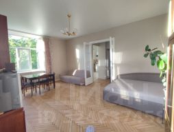 Продаётся уютная 1-комнатная квартира в кирпичном доме ( Сталинка), расположенная всего в 3 минутах пешком от станции метро "Московская". Общая площадь жилья составляет 43 кв. м, из них комната — 24 кв. м с двумя большими окнами, а кухня — 9 кв. м., с шикарным балконом. Квартира находится на 2 этаже 5-этажного дома, построенного в 1958 году. Высота потолков достигает 3 метров, что создаёт ощущение простора и света.
