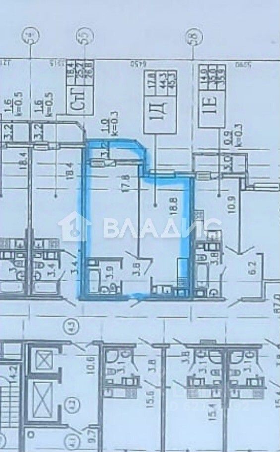 Общая площадь квартиры составляет 45,1 кв. м, из которых 17,8 кв. м — жилая площадь, а 18,8 кв. м — просторная кухня. Наличие лоджии делает это предложение ещё более привлекательным.