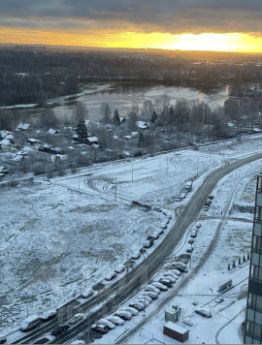 Высокий этаж обеспечивает много света и солнца и прекрасный вид на Охту.