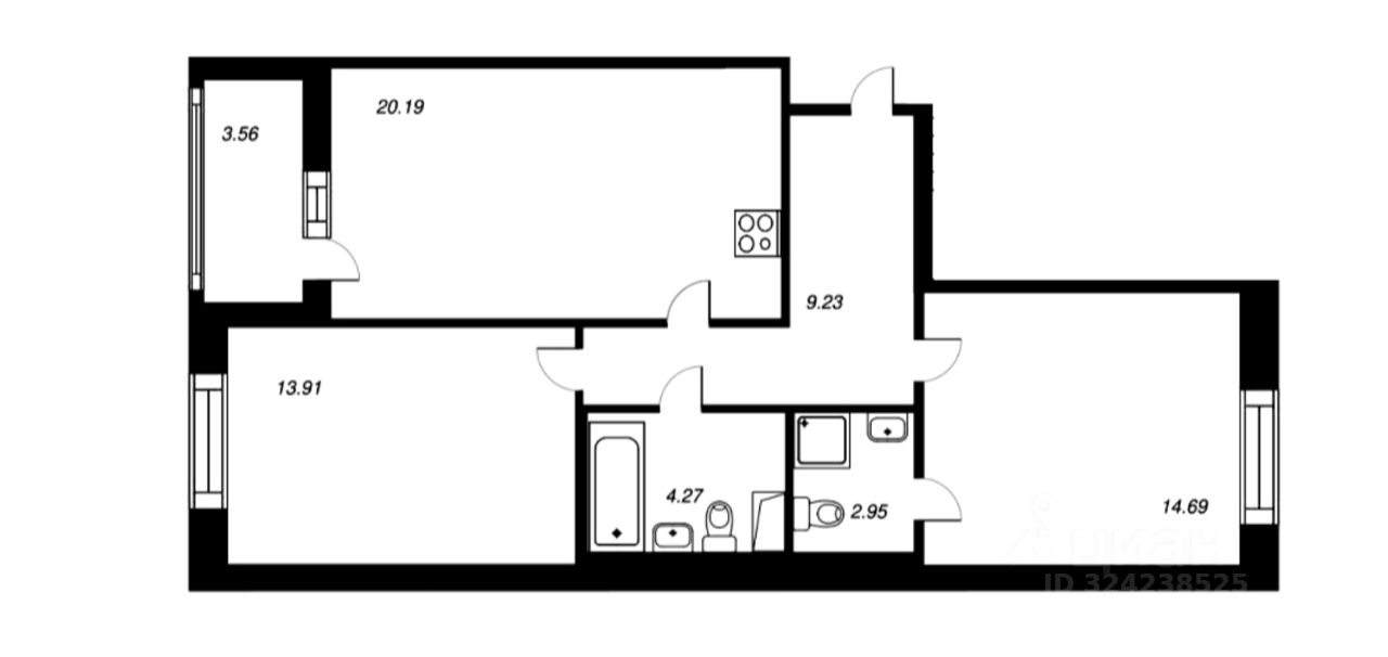 Продается современная двухкомнатная квартира с евроремонтом в новом монолитно-кирпичном доме, построенном в 2025 году. Общая площадь составляет 67,02 кв. м, из которых жилая занимает 28,6 кв. м, а кухня — 20,19 кв. м. Квартира расположена на 1 этаже 12-этажного дома, в пешей доступности от метро "Пионерская" (10 минут на автомобиле).