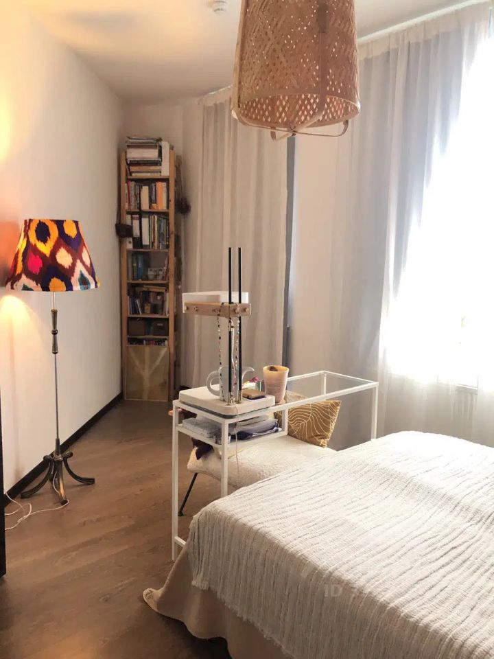 Ремонт в светлых тонах, широкая входная зона, просторный совмещeнный санузел с местом под стиральную машину, кухня с выходом на застеклeнную лоджию, комната неправильной формы с возможностью зонирования пространства.