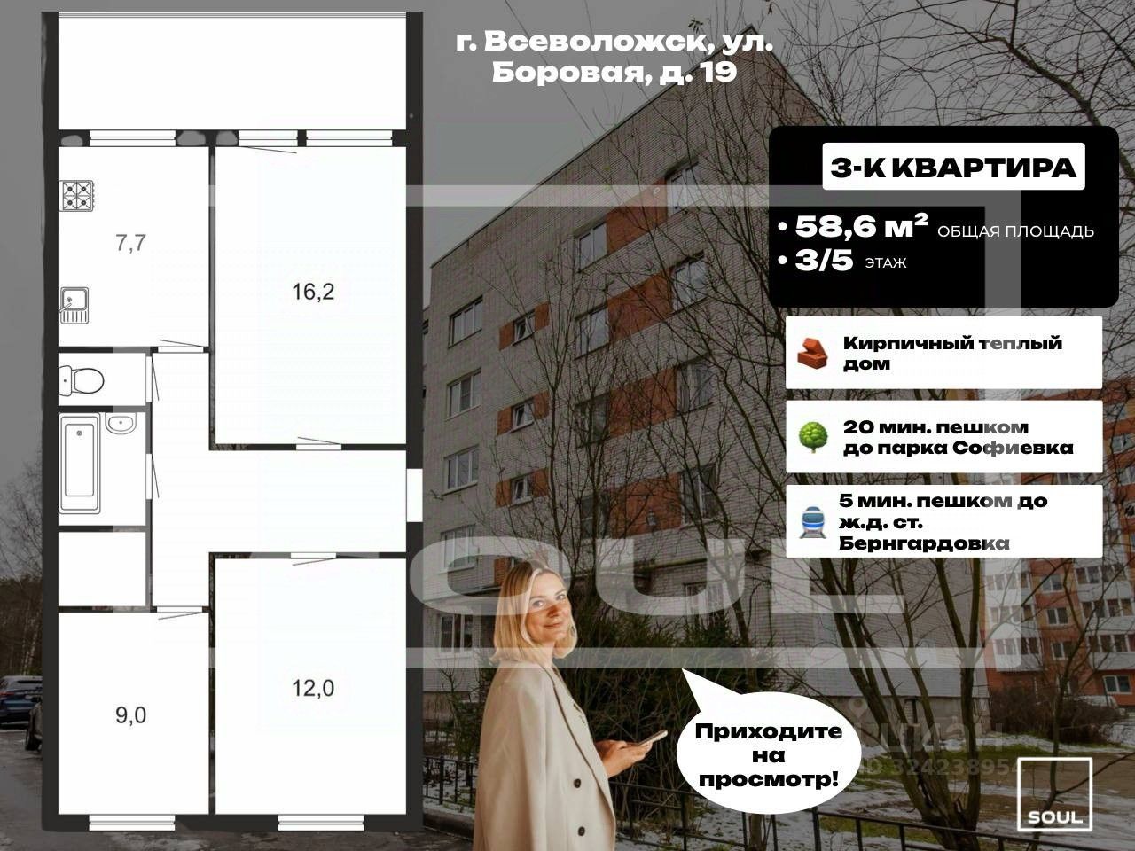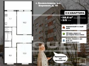 Арт. 126383782 Вашему вниманию предлагается отличная трехкомнатная квартира с хорошей планировкой! Есть возможность изменить проект, в квартире нет несущих стен.