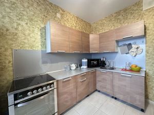 Кухня: 11,7 м² с выходом на большую застеклённую лоджию. Кухонный гарнитур остаётся новому владельцу!