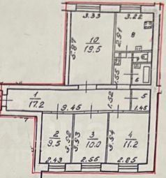 Изолированные комнаты: 19,5+11,2+10,0+9,5 кв.м.