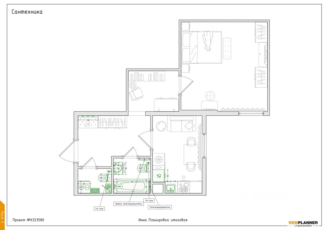 Есть готовый дизайн-проект с расстановкой мебели и визуализацией. Также есть бригада для выполнения ремонта.