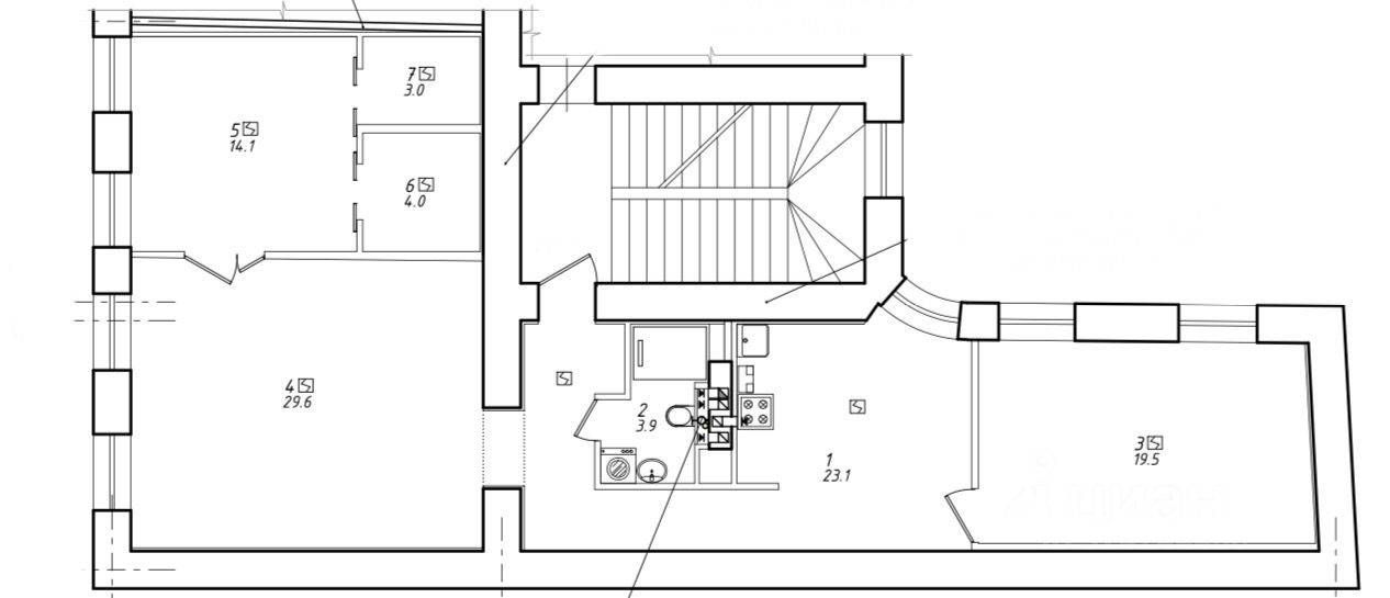 * Светлая, двусторонняя квартира с комфортной планировкой: три комнаты (19.5 + 29.6 + 14.1 кв.м.) имеются так же 2 гардеробные. (3 кв.м + 4 кв.м)