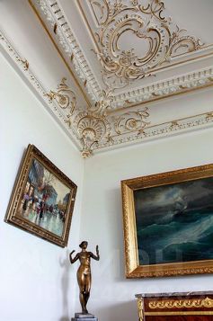 2 - бережно восстановленные элементы декора (лепнина, камин, потолочные розетки);