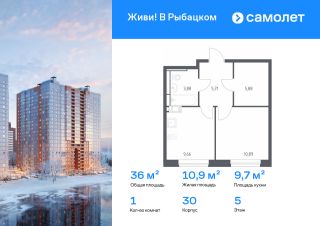 Строим кварталы для жизни с заботой о будущем. Предлагается 1-комнатная квартира комфорт-класса 36,02 кв.м в корпусе 30 на 5 этаже, в ЖК "Живи! В Рыбацком"