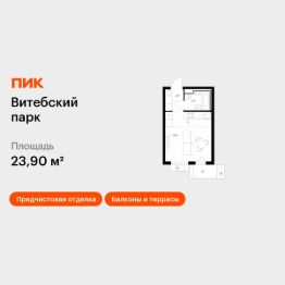 Продаётся квартира-студия площадью 23,9 кв.м на 6 этаже 12 этажного дома (Корпус 6, Секция 2) проекта ПИК Витебский парк. Светлый просторный подъезд на уровне земли, функциональная планировка, большие окна, предчистовая отделка.