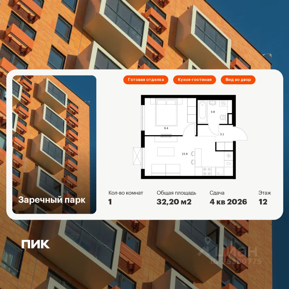 Продаётся 1-комн. квартира площадью 32,2 кв.м на 12 этаже 24 этажного дома (Корпус 6, Секция 2) проекта ПИК Заречный парк. Светлый просторный подъезд на уровне земли, функциональная планировка, большие окна, c отделкой.
