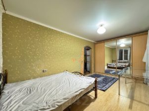 - Просторная главная комната (16.5 м²) является главным помещением в квартире. Благодаря двум окнам комната получается очень светлой. На полу аккуратно уложен ламинат.